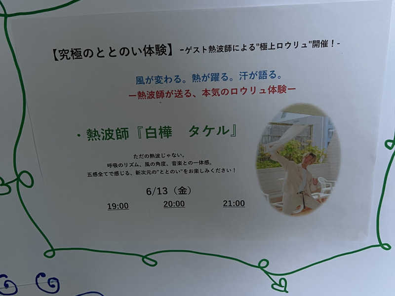 sauna煌ではゲストアウフグースは初らしい。実際お客さんもかなりいらっしゃって終わる度に盛り上がっててかなりよかった!