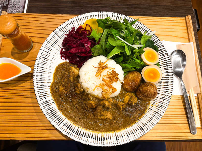 サウナ飯もメニュー表全部食べたいくらい美味そうだったがスパイスカレーを注文