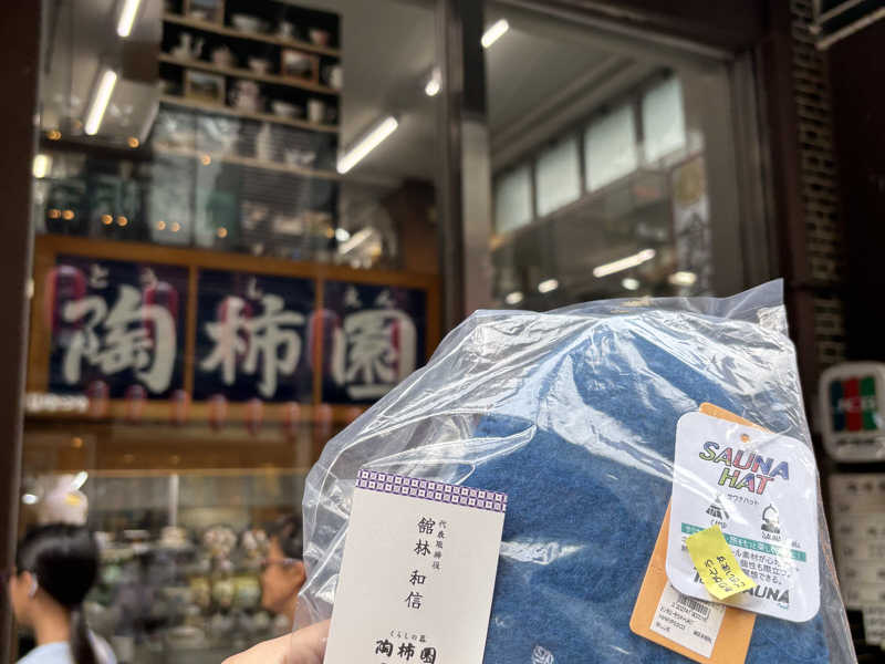 器好きなので途中「陶柿園」さんに立ち寄ったらなぜかサウナグッズコーナーが充実してる。ちょうどサウナハットが5年も使ってへたってたので新調。