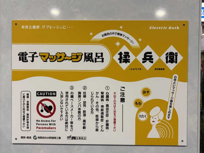 脱衣所の壁に電気風呂の看板を発見!設置されたのですね😍