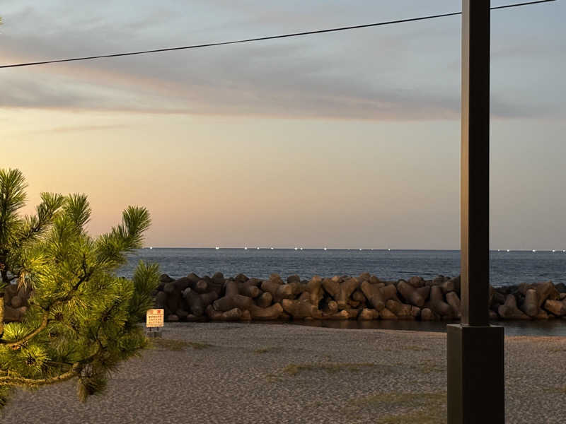 温泉もしっかり堪能。日暮の海を眺めながら良いひとときでした。イカ漁盛んらしく、漁火がたくさん見えました。