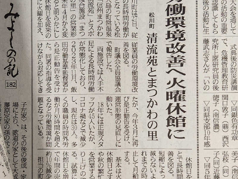 ちなみに、現在、清流苑の定休日は毎週「水曜」ですが、