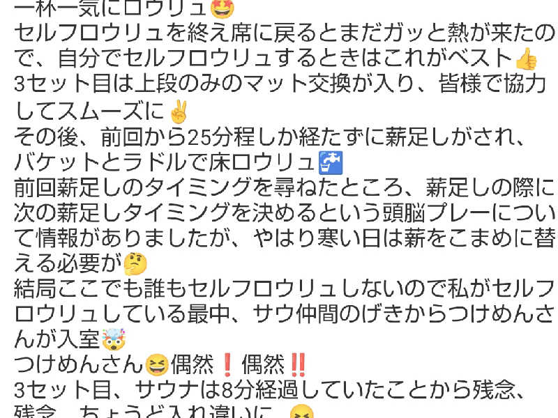 特に2セット目には熱波サービスに加えてオートロウリュも同時に発動して激熱に❤️🔥