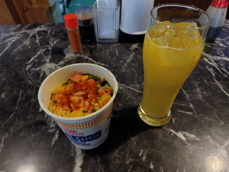そしてこちらでの定番、カップ麺とオロヤクを頂きました🍜🥤