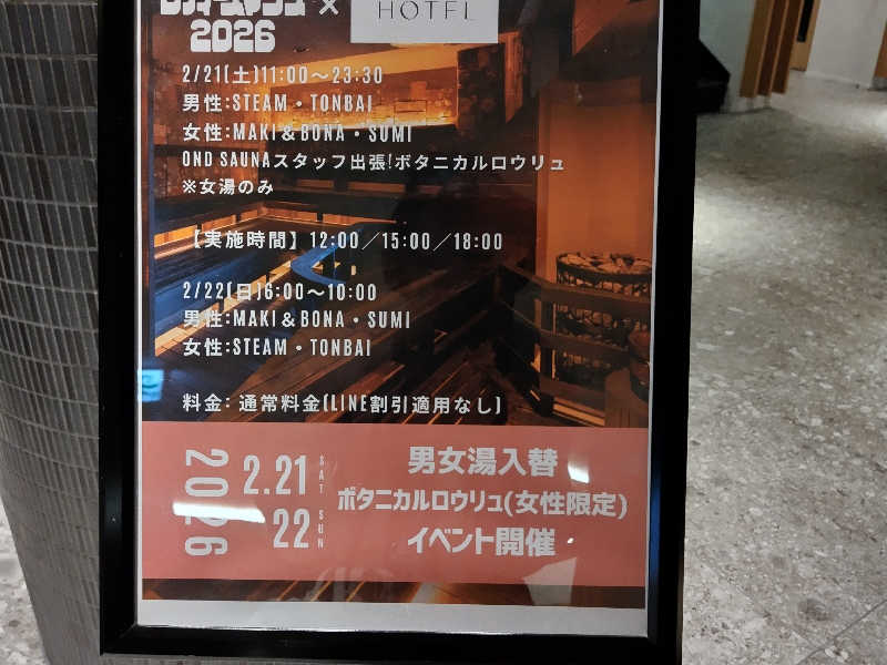 昨年は平日、月曜日開催ということで参加出来ず、またどこかで入れ替えイベントが実施されればと思ったものの、その後は男女入れ替えがされることはなく、昨年8月にはYoutubeサウナ番組、サウナノアナにて取り上げられ、TNC浜﨑日香里アナが女湯のサウナを堪能して大絶賛👏