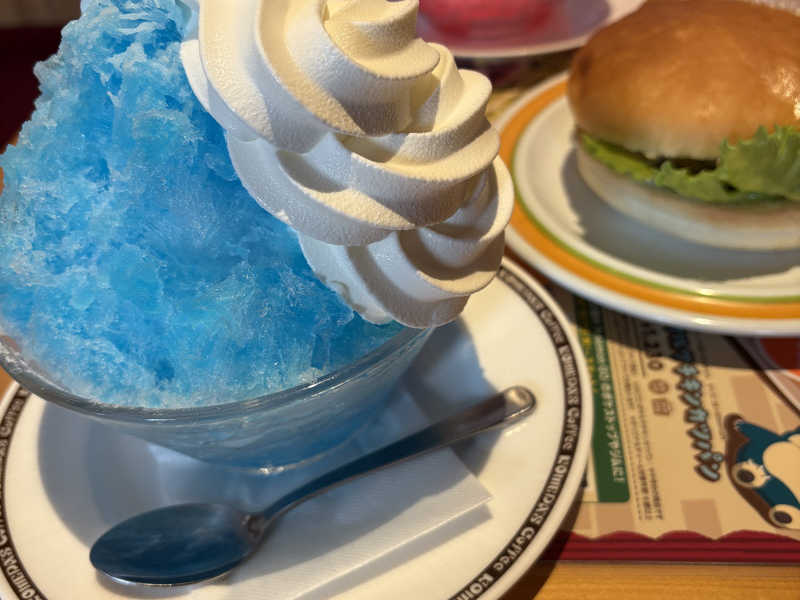 コメダ珈琲でかき氷と夫はハンバーガー🍔も食べてから、もう夕方過ぎのピークですよね?の江別湯の花にin
