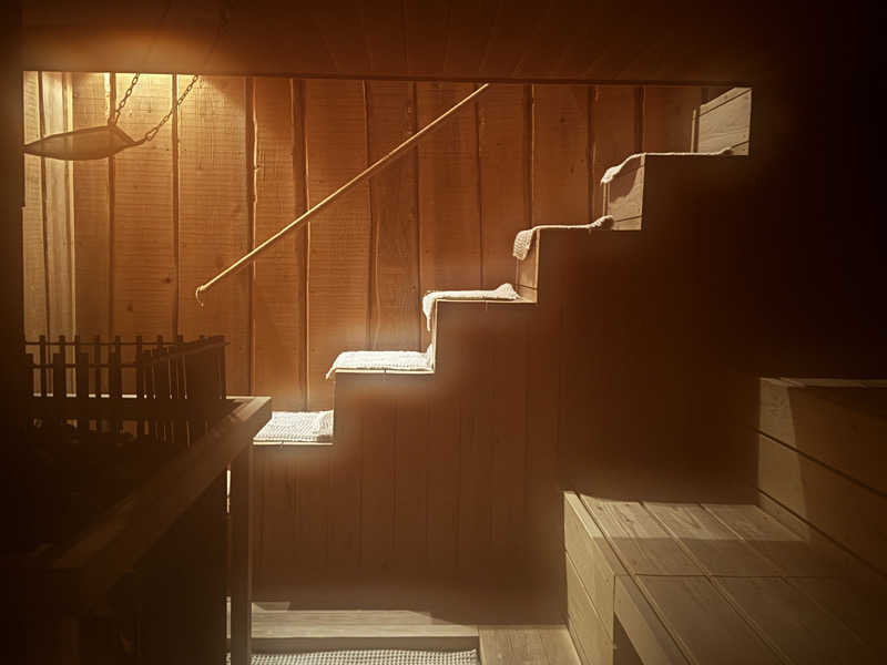 2回目は、最上段なからって座る。入り口から遠い最上段に座るも、そんなに熱くない。どんやらこちらは、低温で長めのサウナを推してる感じがした!普段100℃越えで慣れてる体は、物足りない感じ!セルフロウリュでもあれば、ありがたいのだが!本日は3回ともちょい整いと終わりました!
