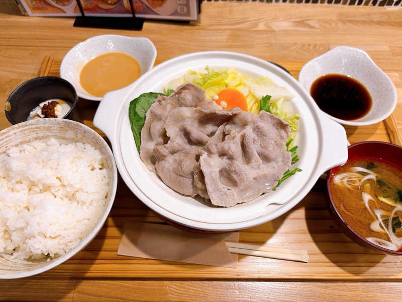 今日のゆいる飯は久しぶりに蒸ししゃぶ定食🍚 ポン酢と胡麻だれの無限ループを楽しみたい美味しさです🤤
