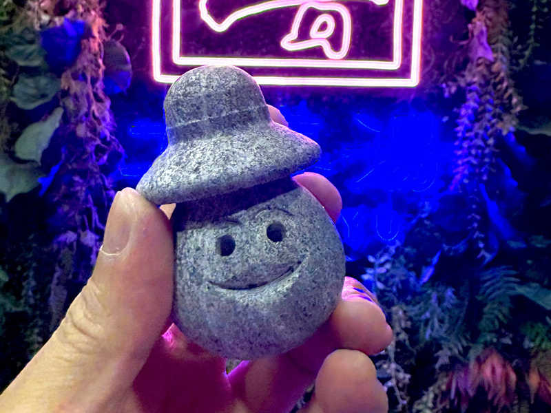 吐湯口や柱・露天風呂の壁などには、アンモナイトや星・太陽モチーフなど謎アート?オブジェ?が多数あって面白い。
