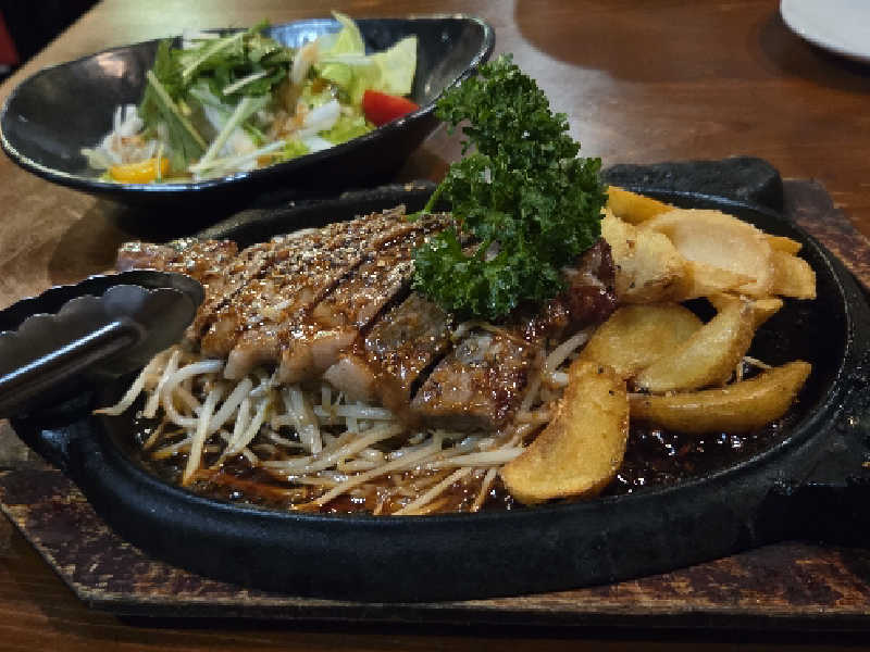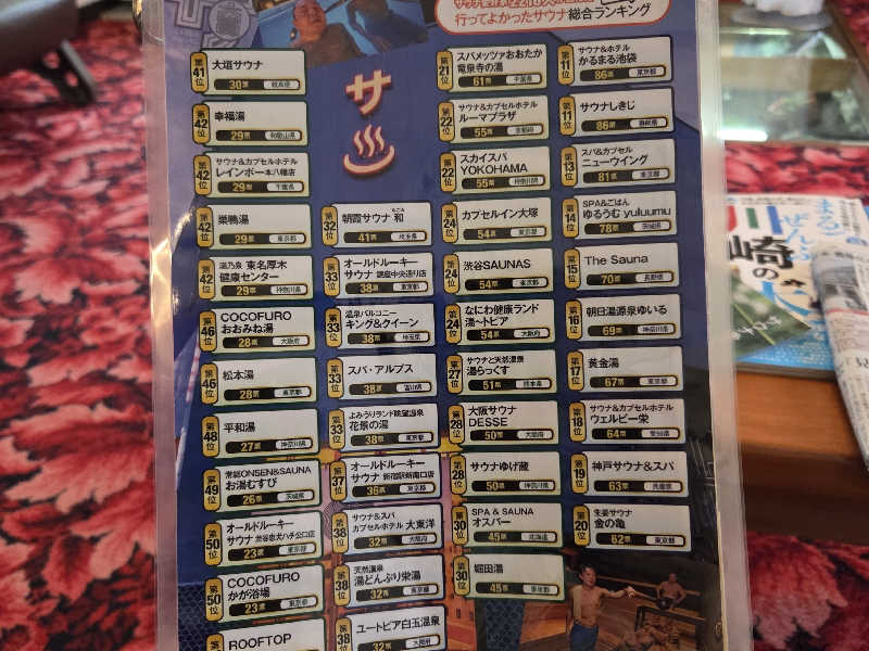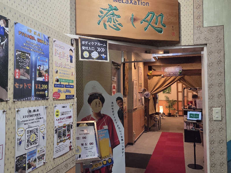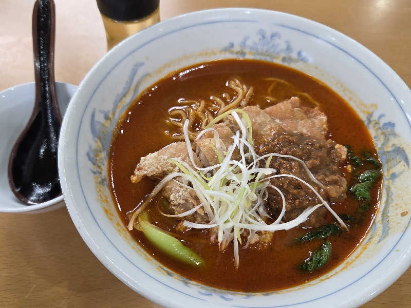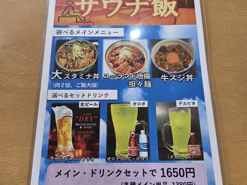 一言:サん連休のラストはヨコヤマユーランド鶴見へ。こちらはLINEクーポンで1000円入館できるとてもお得な施設😁天然温泉のこちらはドラマ版サ道偶然さんの台詞に出てくる水風呂の冷たさが有名。また、天然温泉温泉なので、香り、肌触りも楽しめます。洗体後、まずはバイブラ風呂へ。適度な熱さで気持ち良し。いよいよサ室へ、こちらのサ室は黄土壁でなんだか包まれる感じが良き。本日は結構な混み具合で下段しか空いてないけど、こちらは1セット目なので無問題。温度は92℃だけど、汗の出方半端なし。滝汗だ。気持ち良い熱さなので10分いれちゃう。サ室後はびっくりシャワーで汗を流してから水風呂へ。今日は16℃くらいで偶然さんの言う程の冷たさではなかったけど、逆に長めに入れて、これはこれで有り👍外気浴ゾーンも競争率高めでしたが、イスゲット、台風の余韻風が冷たくて気持ちいい。露天には壺風呂、岩風呂があり風が冷たい日には、とても気持ち良き。午前3セット、午後2セット堪能。ランチはメインメニューのユーランド唐揚担々麺を頂きました。サクサクの衣に担々スープが徐々に染みていくことで食感の変化も楽しめて、めちゃうま!楽しいサん連休でした!