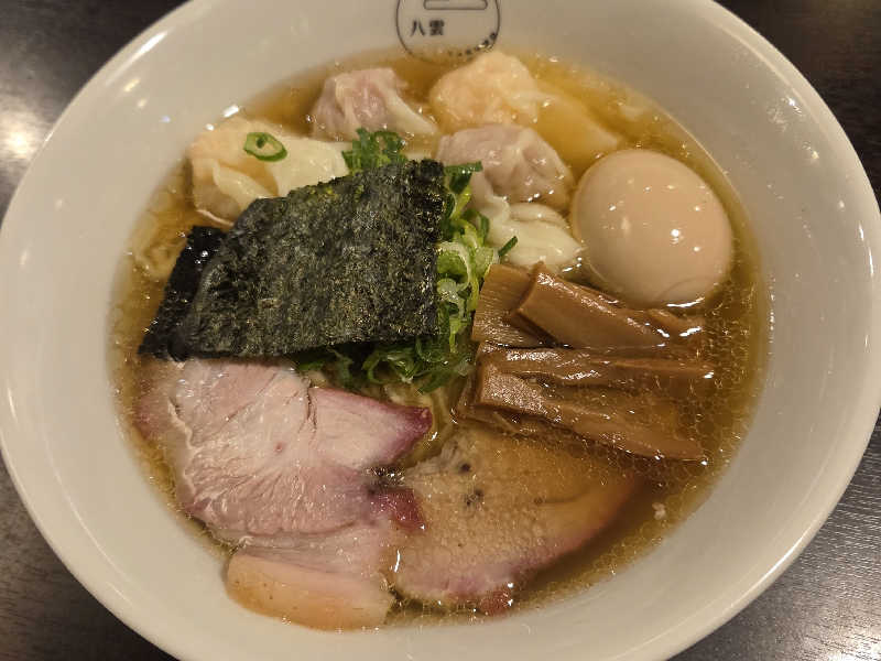 サ飯は近くの人気ラーメン店、八雲へ。白だし特製ワンタン麺が、むちゃくちゃ旨くて、過去食べたワンタン麺の第1位を塗り替えました🍜