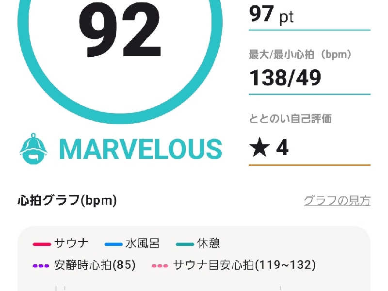 一言:雨模様の休日は、サ道のロケ地、ニューウイングへ。こちらは内気浴オンリーなので、天候には影響されません😁サ道の気分でテンション高まりつつ、洗体。ボディーソープ、シャンプーの種類多すぎ(笑)オジさんどれを使うか迷ってしまいます。お風呂は2種類、円形のジャグジー電気風呂と二股カルシウム温泉、ジャグジーで身体を温めてから、いよいよサウナへ。3種類ある中で、まずはメインのボナサウナ。温度、湿度ともにちょうど良い感じ。じんわり熱さが感じられて、徐々に汗も吹き出してくる。テレビをボンヤリ観ながら、1週間を総括。疲れも癒されるー。水風呂はプール、泳げる広さ。16から18℃設定でちょうど良き。水泳は苦手だけど、けのびしてみる。むちゃ気持ち良い。休憩してからの第2セットはカラカラサウナ、こちらはボナより、高めの温度設定だけど、不思議なことに全然苦しくなく、ラジオを聞きながらはいるスタイル。サ室も新しくキレイ。瞑想しながらサウナを堪能、3セット目はテルマーレ改、セルフロウリュあんど内輪でセルフ熱波。サ室を一人占めだったので、かなりの贅沢感。4セット目はボナに戻り、温冷交代浴を何セットか楽しんでからフィニッシュ。