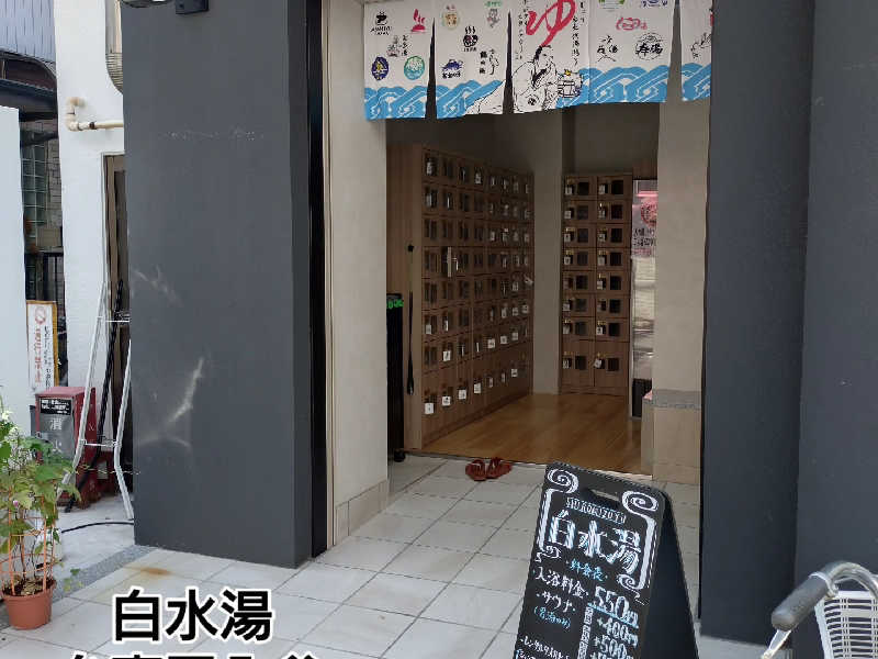 一言:本日は台東区入谷にある白水湯へ。鶯谷駅から徒歩で10分程。腹ごしらえにCraftRamenBiTさんの冷製ラーメンを楽しんだ後、初めての訪問、気分が上がります。リニューアルされた銭湯で内装、浴槽全てが綺麗、良い感じです。シャンプー、ボディソープ、石鹸があるのもありがたい。洗体後、湯通しするのはいつものルーティン♪いよいよサ室へ。広くて、清潔😆サ室の温度は80度くらい。20分に1回オート爆風ロウリュがあるみたいで、サ室内は湿度高く、体感は温度以上にあつい。無理せず7分で退室、水風呂は18度、いつまでも入っていられる気持ちよさ〜。外気浴スペースには椅子が10脚ほどあり、難民にならないのも良きです。第1セットから意識飛んじゃいました😅このあと結局4セット堪能。3セット、4セット目はあまみも大量に出て、完全にトリップ。最後に温冷交代浴をするもルーティンになりつつある今日この頃。