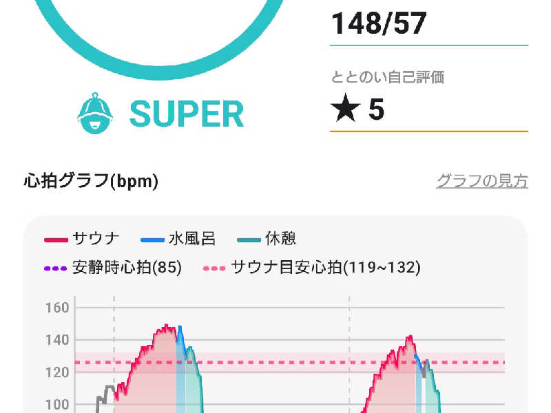 一言:軽井沢日帰り旅行。ゴルフ後のトンボの湯。オーイとんぼ好きの私としては名前だけで、テンション爆上がり。天然温泉のこちらは、内装も超きれい。飲用温泉を紙コップで口に含み、身体を洗い、温泉でゴルフの疲れを癒し、いざサウナへ。露天風呂に設置された15名程のスペースのサ室は小窓から外の景色が眺めることが出来るなんとも言えない風情のある空間。入口にはタオル地のマットも常設されており清潔。サ室温度は85℃。じんわりと、苦しすぎない熱さ。最初は8分で身体慣らし。念願の水風呂へ。体感12℃の水風呂は優しい肌触りで気持ち良きとしか言葉に出ない。外気浴で軽井沢のマイナスイオンを身体中に浴びて、物凄く多幸感に包まれました。3セット楽しみ、その後も軽井沢を満喫、良き1日でした。