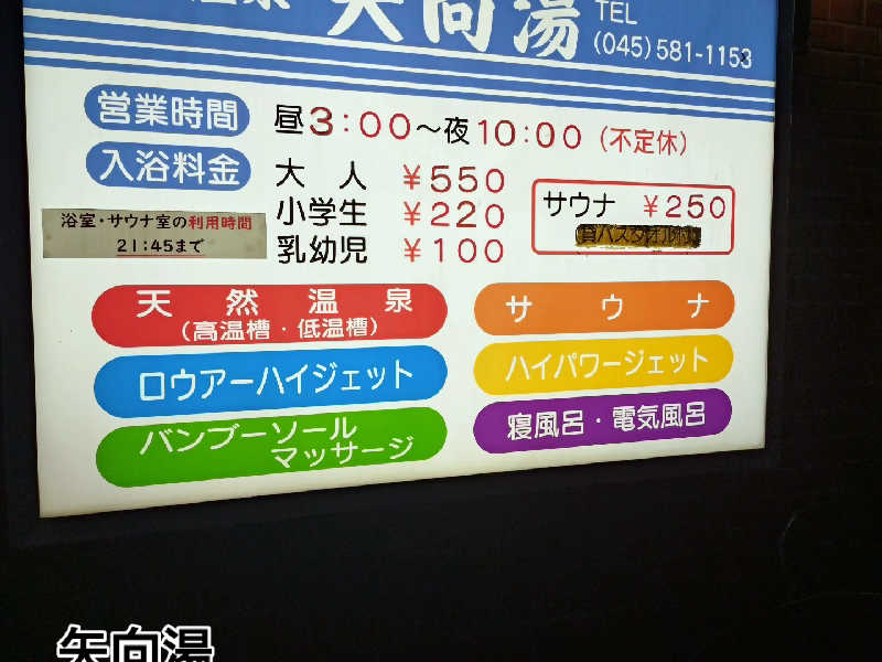 一言:残暑が厳しい毎日、そんな中、エアコンが死にました。急ぎで修理をお願いし、本日修理対応頂けることになっていましたが、予定時間になっても来ず、確認した所、日程を間違えられていた〜。なんとか本日来てくれることになり、修理頂き復活。修理完了のお祝いと汗だくの身体を癒しに矢向湯へ。こちらは、天然温泉、お湯が柔らかくて、気持ち良き。サ室も98度ながら熱すぎず、じんわりと身体の芯から温まります。ヒノキの香りも落ち着くー。水風呂は19度いつまでも入っていられる安心感。3セット楽しみ、エアコン騒動をリセット、ととのったー。