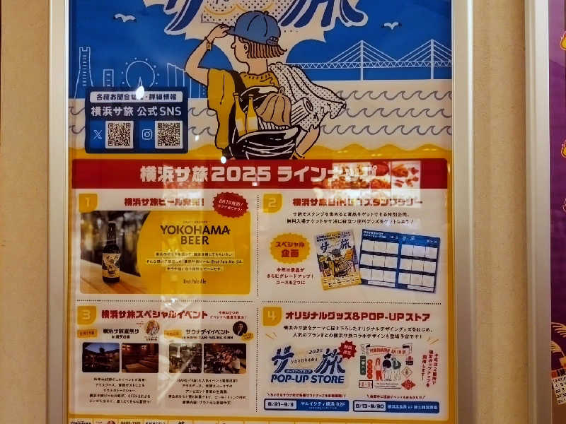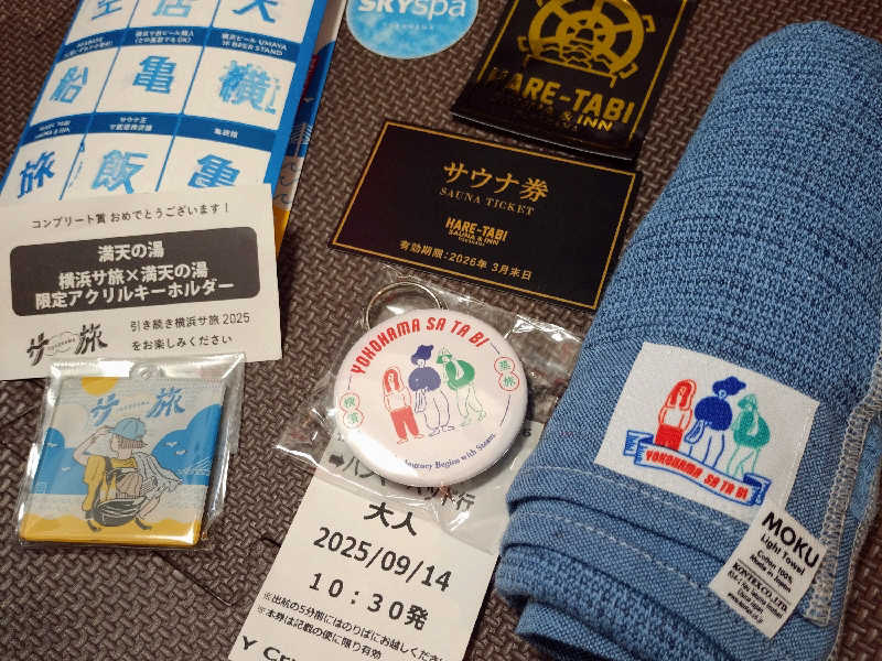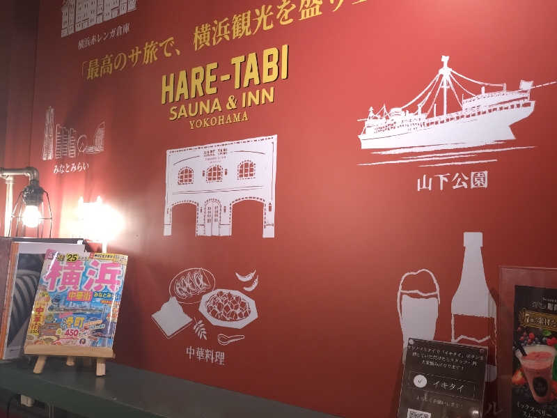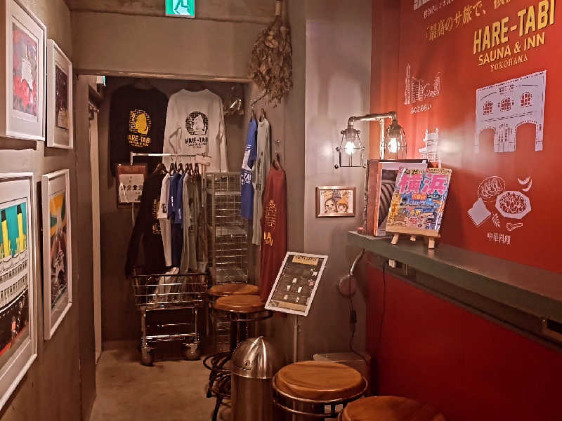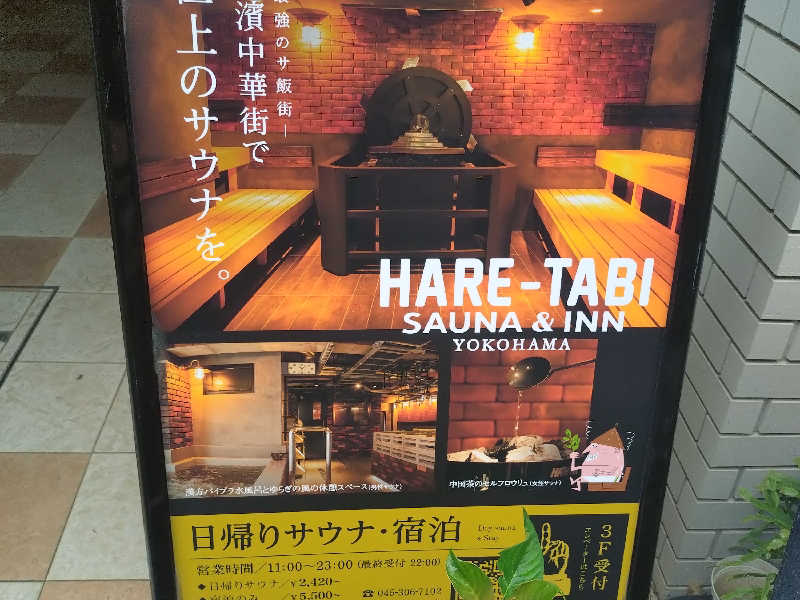 一言:連休最終日はサ旅コンプリートを目指し、HARE-TABI SAUNAへ。初めての訪問。まずはシャワーブースで身体を清め、こちらは熱風呂が無いため、早速サウナへ。目の前に広がる水車、かなり雰囲気良しです。湿度もそこそこ、温度もじんわり来る熱さ。まずは様子見で下段から、そろそろ出ようかなとしたタイミングで、水車がライトアップ、これはロウリュ、体験せねばと思い、待つこと暫し、なかなか動いてくれない〜、限界〜と思ったら逆回転、なるほど逆回転で水をかける仕組みなのかー。ロウリュを満喫し、向かうは水風呂、漢方冷水風呂とのことで、ほんのり色味がかった水風呂は身体にも優しい柔らかさ、バイブラゴリゴリの14℃なので冷たさも持続!休憩スペースも椅子が多くて最高、むき出しのパイプ、天井からのファンの風、異世界にいる様な不思議な感覚。3セット目には、スタッフによるゲリラロウリュも体験、3種のアロマ水の香りを楽しみながらアウフグースでアッチアチ、休憩中には足に冷水をかけてくれるサービスも、気持ち良すぎて昇天しそうになりました。サウナ中にオーダーしたオロポもジョッキの縁に塩が塗ってある有り難いサービス、最高。4セット堪能して、サ旅ビンゴ3列の景品として無料券もゲット😆サ飯は鳳林であさりそば、最後に横浜ビールでサ旅コンプリート!景品はキーホールダーとお目当ての景品ではなく少し残念でしたが、やり切ったことに満足です!