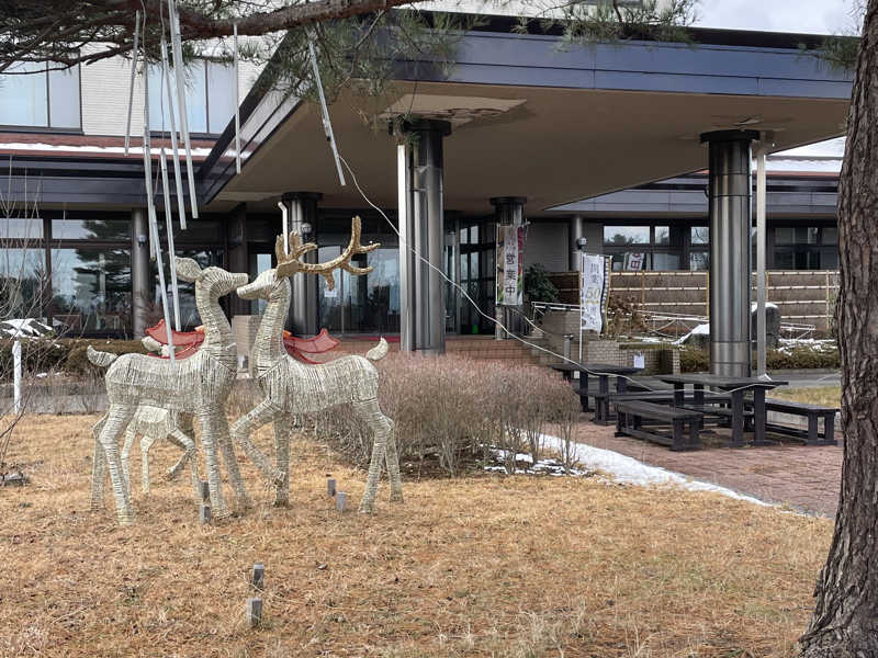 露天風呂に併設されている水風呂に浸かりその後そばにある長椅子で休憩、空はまた青空。午後から雪が降る天気にも関わらずしばしの憩いの時を過ごさせてもらいました。