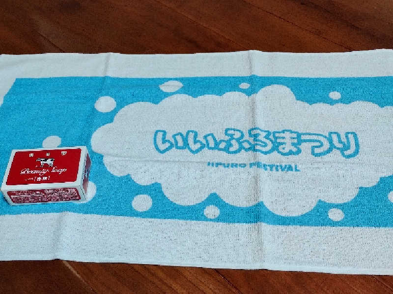 気を取り直して本日はその入館券で入場です。早速番台で券をお渡しすると歓迎されいいふろまつりのタオルと石鹸をいただきました。何か一気にマスマス気分もよくなります。