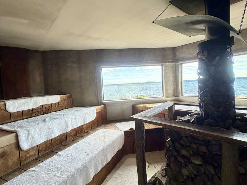 潮風が心地よく、水平線を見ながらのととのい。施設から貸し出される足を包み込むタイプのバスタオルも気が利いている。波の音が絶え間なく続く中で、体だけでなく心も整いました!