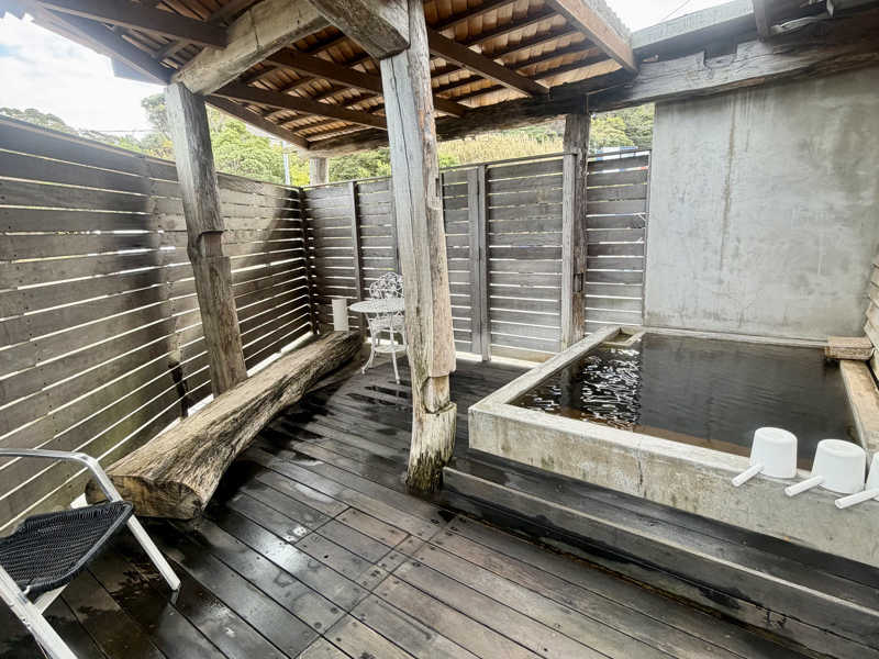 そして、なんの表示もない水風呂の横にある扉を開けると露天風呂と外気浴スペースイス3脚があります!表示がないので初めて行ったら分からないかも?思ったより外気が冷たくて5分で冷え冷えでした!