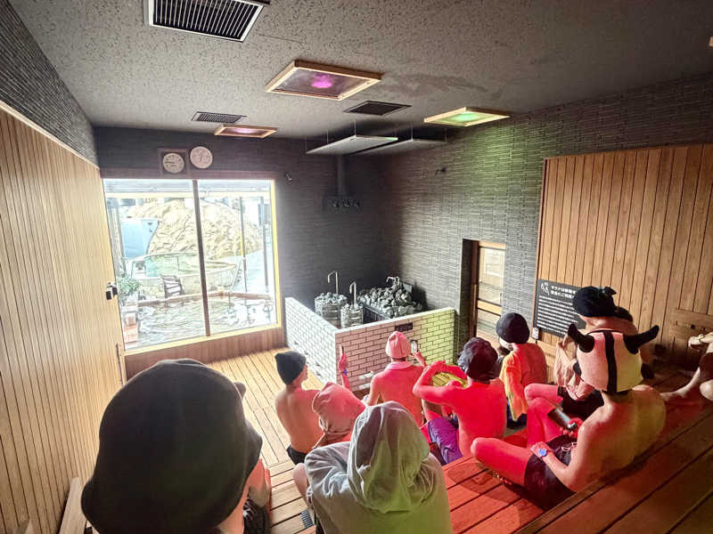 サ室は3つ、まずは大涌谷は90度20名位かな3段。アウフグースサービス有りのどデカい薪ストーブがある!今日は2回赴きの違ったアウフグースを受けれて大満足!