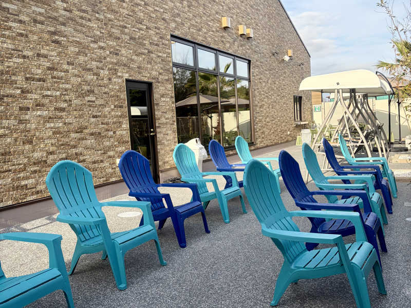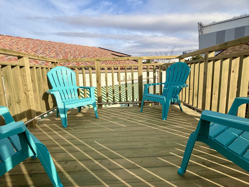 屋上の外気浴スペースには、ととのいベンチと4脚のイスが用意されています。プラ椅子で夕日の陽だまりに包まれた感じは最高に気持ち良かったです!この開放感は唯一無二です!