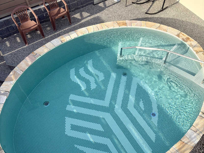 水風呂は、地下から汲み上げられた天然地下水かけ流し。琥珀色に染まった水が独特で、通常の水風呂とは一線を画します。水温は18度くらいかな?深さ80cm、ゆったりとした露天タイプなので、「長く入っていたい」という気持ちになります。肌あたりが柔らかく、冷たすぎず心地よい。薪サウナの熱気を受けた体に、この水風呂は本当に心地良かった!