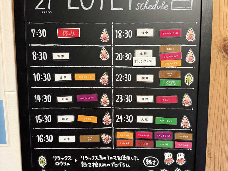 Black Friday最終日ということもあり色々なイベントをやっていて特に生姜ロウリュが倍?の6個になっていました。最上段しか空いていなかった為、初めてていきなり最上段参加となり心配で震えてましたが予想通り半端なく熱くて2セット目終了と共に逃げるようにサ室を出ましたが