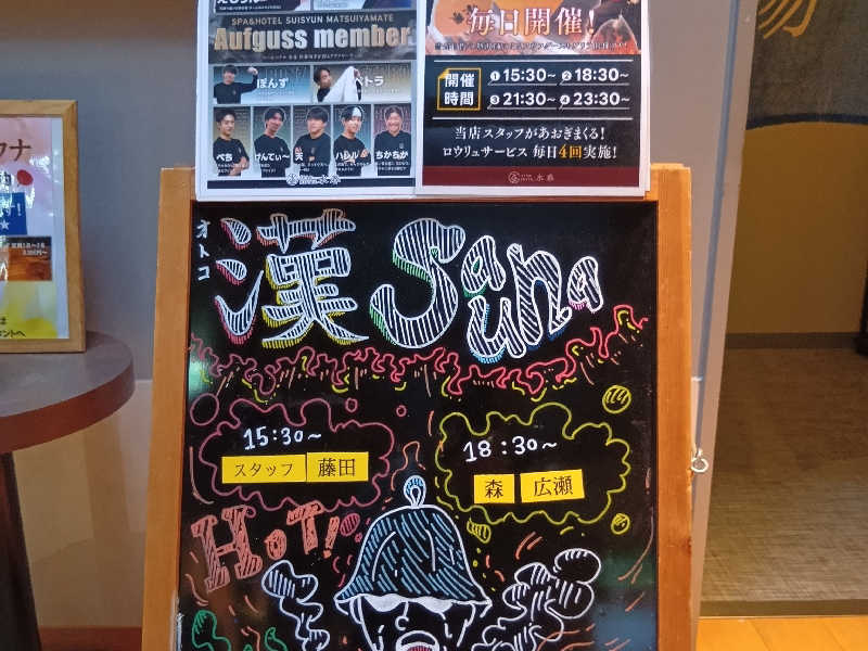 ロウリュサウナ4セット、外気浴3セット、水風呂は何度も入りました。