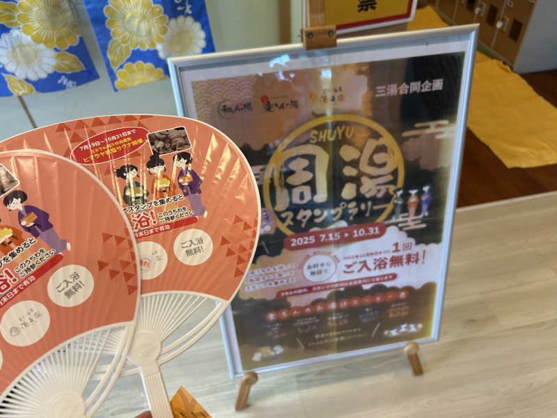 今月末までの「周湯スタンプラリーうちわ」を使って入館(^^)。