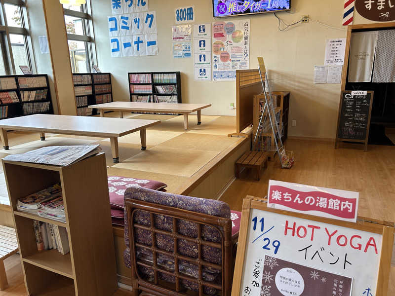 腰タオルで横になったり漫画を読んだり。そしてまた風呂やサウナに戻れる。雨でも関係ないのがさらに長所です(^^)。