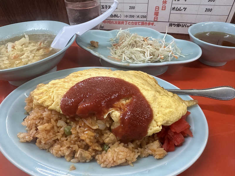 この店に来たら天津飯率が95%を占めますが、今日はオムライス(メニューにはありません)をチョイス😆