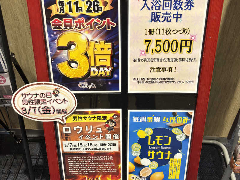 男性奇数日はスタジアムサウナのあるゆずるはの湯側