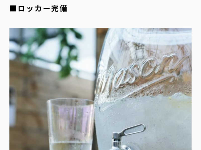 ホームページにはお洒落な入れ物に入ったレモン水が頂けるって載ってたけど実際は100均で売ってる入れ物に水だけ💧