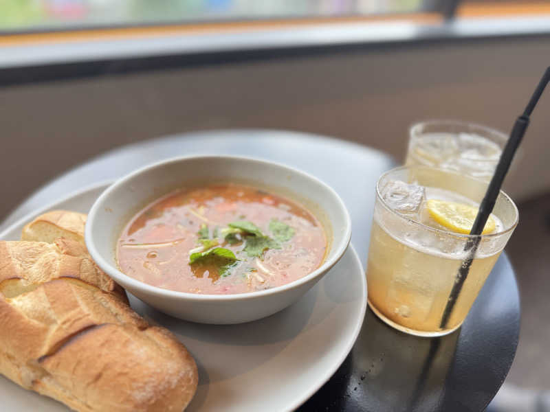 私達は2人がけのソファーに2人で座ったんだけどテーブルが丸くて小さめ。1人分の頼んだご飯を乗せたらそれ以上は乗らず…