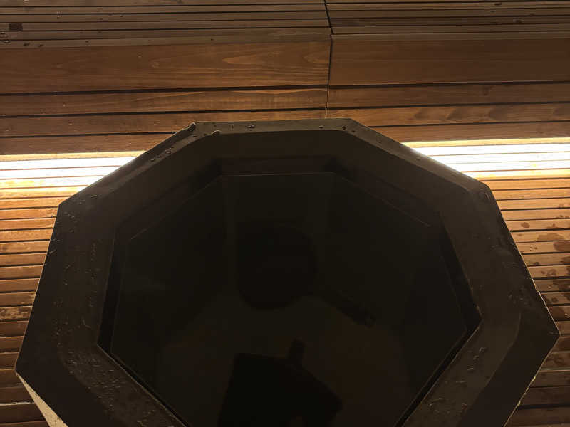 立ちシャワーで汗を流し、水風呂はかなり冷たい。10℃前後かと。