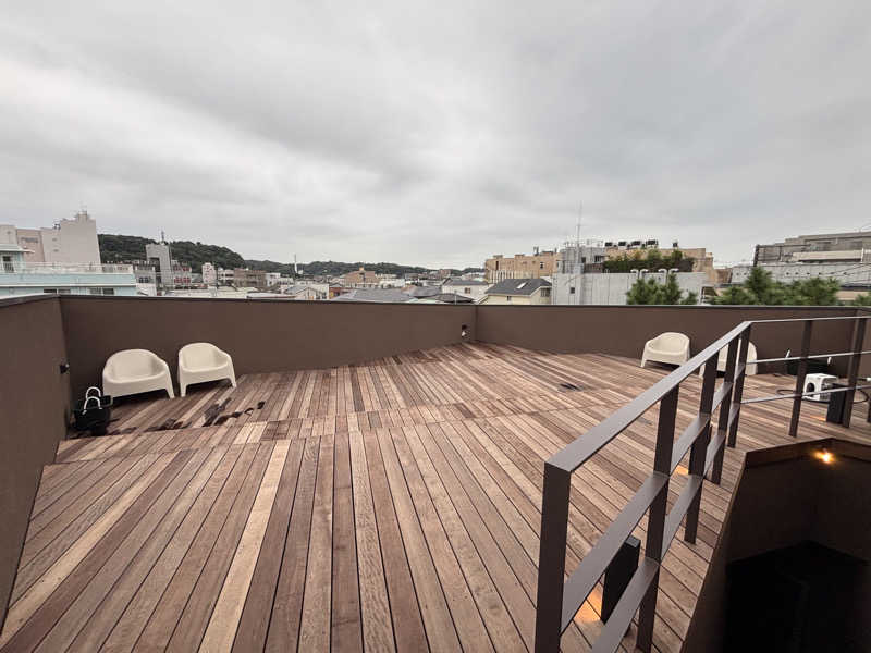 外気浴はさらにもう一階。屋根がなく開放感はんぱない。鎌倉駅西口側が一望できる。