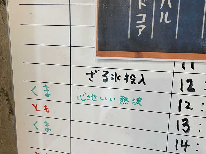 ロウリュは濃ゆい緑茶の香りが広がり、長い時間をかけて身体の芯まで熱の入る素晴らしい熱調整、言葉では熱くするから覚悟せいや的なことを言いつつも気持ちの良いラインからはみ出さない優しさが今日も暖かいです
