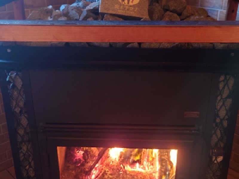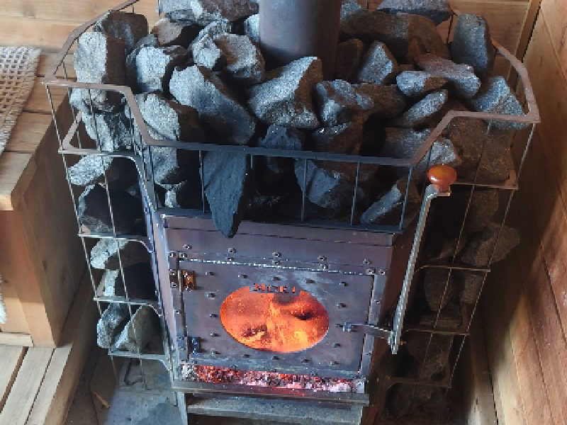 窓の大きな特製ストーブの薪が燃える様子を見ながら、サウナを堪能させていただきました!じっくり蒸したあとの外気浴最高でした!