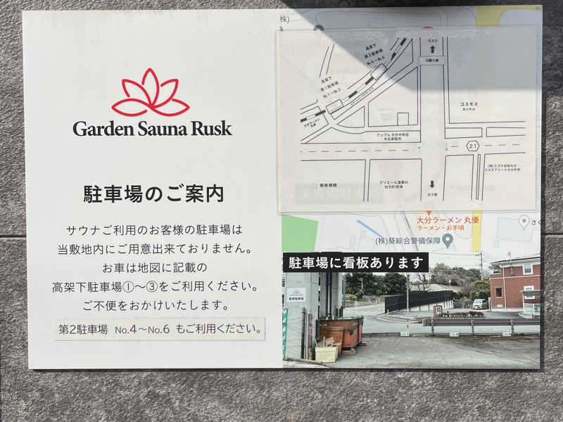 朝早く高速バスで博多から大分駅へ。最初のサウナはこちら。会員登録して予約が必要です。朝イチの10:30に予約。時間は2時間コースのみ。受付は無人でQRコードでの入室でした。予約時間以降で無いと入室できませんでした。入室するとすぐに脱衣所ロッカー。サウナは薄暗くゆったり音楽が流れていて雰囲気良し。真ん中にストーブがあってコの字形に席が配置されています。席はそれぞれ高さが少し異なっていて一番高さのある1辺だけは2段。セルフロウリュできます。ストーブ位置が若干下の方にあるためロウリュ後のムシムシが伝わってきて良いです。2つのロウリュ用のバケツがありますが片方はほうじ茶なのかな?良い香りがします。水風呂は浅めの広め。きちんと冷たいです。ととのいスペースは外気浴スペースのインフィニティチェア。外気浴日和で心地良いです。サ室の入口付近には冷えたレモン水、岩塩、凍らせた一口ゼリーが置いてあってホスピタリティ良し。外気浴用のガウンまであります。サウナやロッカーの規模からシャワーとドライヤーが2つだけで待ちが発生するタイミングが気になりましたが総合的に良きサウナ施設でした。サウナ専門で2時間休日2000円もかからずリーズナブル。