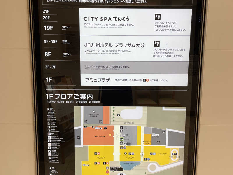 今回の一番の目的地。1年前くらいに出張で大分駅に来た時に見かけていましたが時間が取れずに訪問できずにいたところです。ようやく訪問できました。大分駅すぐの場所にあります。19階まで上がって受付。靴箱の鍵のタグで支払いする仕組み。モニタでメニューを選んで受付してゲートを通過します。13:20頃にIN。その後タオル類を受け取って20階に脱衣所ロッカー。ロッカーが大きくて有難いです。シャワーは全てミラブル。サウナスペースは浴場の奥にあって扉で区分けされていました。サウナはドライとスチームの2つ。ドライは3段のテレビ無し。丁度良い温度設定。3段目の奥の席に小窓があって景色を見渡せます。スチームは中々のアチアチで良いです。水風呂はサウナを出てすぐの1mの深さ。しっかり冷たいです。このサウナスペースに冷水機があるのも良いですね。ととのいスペースは同じフロアに内気浴で椅子はありますが何と言っても階段登った先にある外気浴スペースでしょう。大分の山や海を一望できる絶景でインフィニティチェア。サ室からは遠いけれど最高の場所。お風呂もインフィニティになっていて最高環境でした。