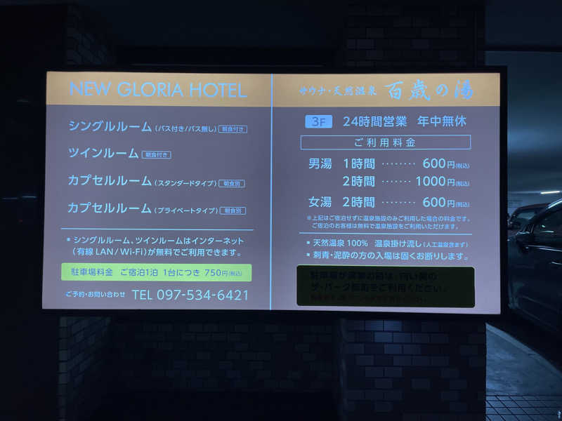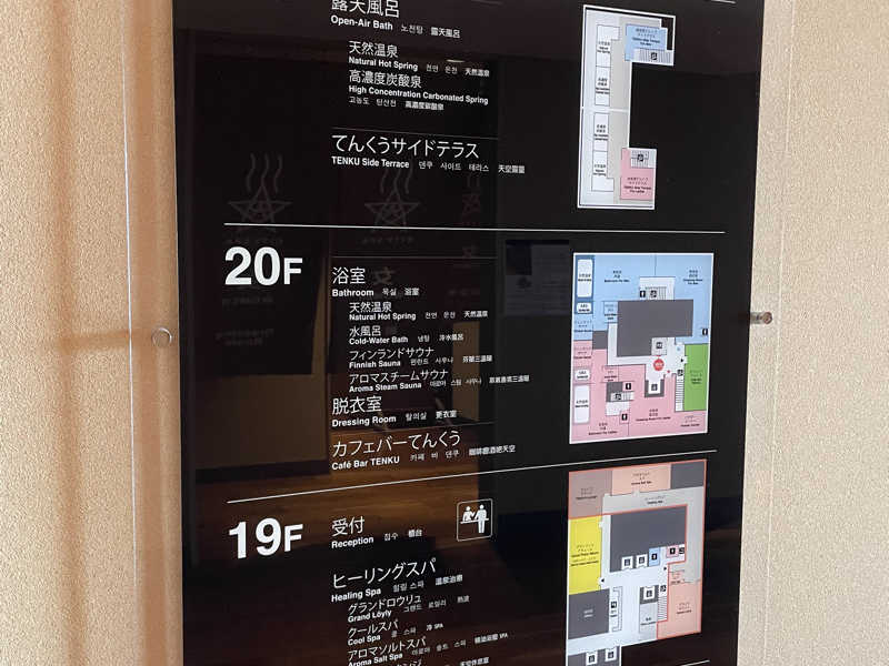 原鶴温泉街にあるこちら。平成天皇もご宿泊されたようで格式高そう。15時IN。ホテルのフロントの一角で日帰り入浴の受付があります。現金支払いしてタオルの入った袋を受け取ります。浴場に進む手前に貴重品を100円返却式のロッカーに預けてから浴場脱衣所に向かいます。男湯はジャングル風呂。その名の通り浴場内に木々が沢山あってジャングルのよう。この雰囲気は唯一無二感があって良いですね。サウナの入口には昭和を感じるデザインとフォントのサウナ看板。これまた良し。サウナは対面席の片側は2段。テレビ無し。温度計は100度を指していますがマイルドアチアチです。徐々に発汗。水風呂はサウナを出てすぐ。広く浅い水風呂。寝そべってプカプカしながらゆったり入れます。ととのいスペースはジャングルの中に幾つかプラ椅子。ジャングルととのいです。