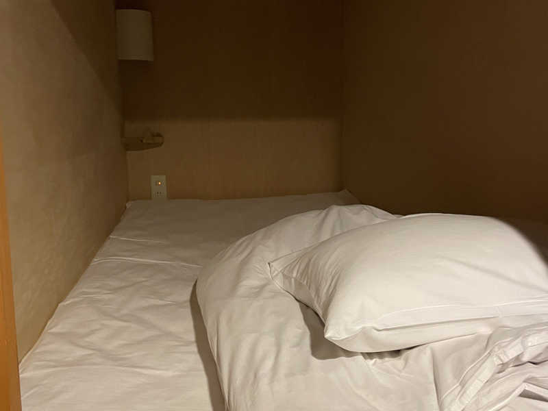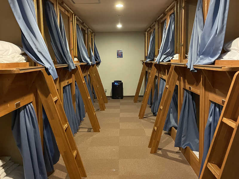 本日の宿泊先。2階フロントでチェックインすると迷路のように3階まで案内されるし鍵が3つもあります。カプセル宿泊のロッカーはカプセルすぐ近く。3階カプセルと浴場がすぐ隣なので行き来が楽。18時近くにチェックインして休憩処でまったりしていたら20時になっていたので浴場へ。あつ湯とぬる湯。ぬる湯のところに電気風呂。百歳の湯の百歳は「ひゃくさい」では無くて「ももとせ」と呼ぶそうな。湯船に浸かりながら壁にある説明文に記載されていました。サウナはドライとスチームの2つ。スチームはアチアチが足りず少し匂いが良く無いのですぐに退散。ドライは奥行き深めの2段。テレビ有り。ほぼ貸切でした。オリンピア製のストーブに年季の入ったサ室。ほど良いアチアチ。水風呂はサウナを出てすぐ。ヒエヒエでは無いですが今の季節に丁度良いくらい。ととのいスペースは無いですが水風呂が3段くらいの階段になっていて淵に座ってのととのい。本日は沢山サウナに入ったので軽めに2セット。