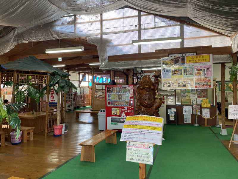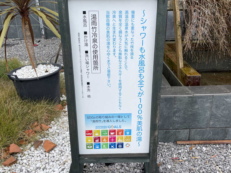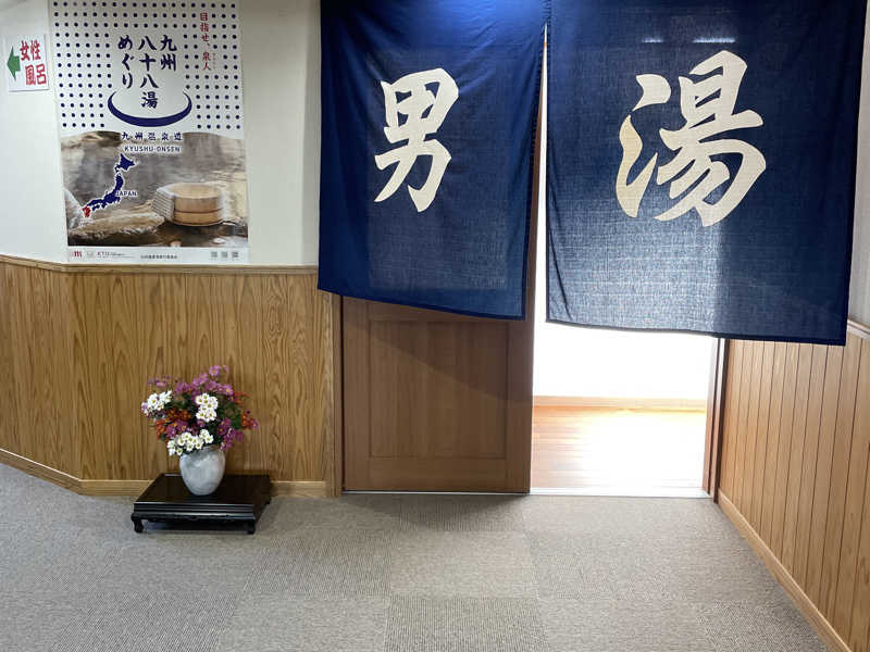 ここに向かう途中に看板が沢山ありました。14時過ぎにIN。靴箱は100円返却式。券売機で入浴券を購入。ここも九州八十八湯めぐりの対象施設でしたのでスタンプをポン。脱衣所ロッカーも100円返却式。南国風の音楽が流れています。サウナは露天風呂側。スチームサウナです。天井から蒸気がポタポタ。そこまでムシムシは無いので少し物足りなさはあります。水風呂も露天風呂側。源泉水風呂。ちょいぬるめ。ととのいスペースは外気浴のベンチか内気浴のプラ椅子。ここは温泉を楽しむところですね。心地良い。水風呂の隣が熱めのお風呂で交代浴が楽しめます。マタギをしたいところですが少し段差があるので直接は難しいですね。スチームサウナより温泉を楽しんでの2セット。