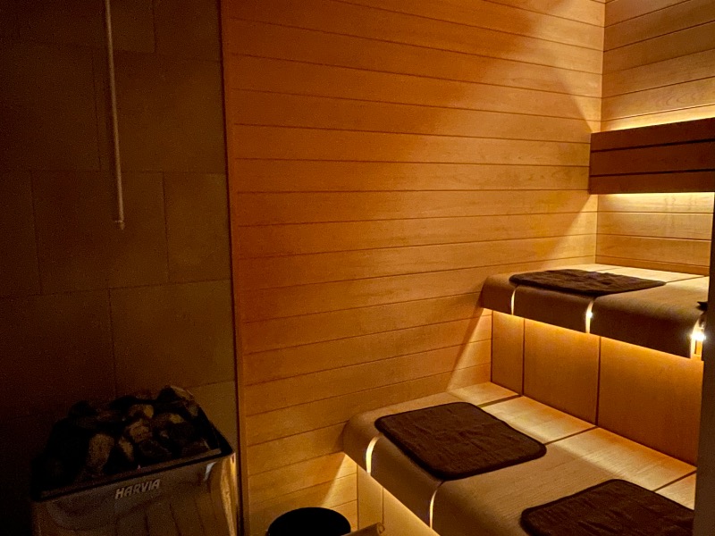 都会のホテルは社交場。特にレストランには、昼夜問わず多種多様な人々が集まってくる。仕事終わりにそんなお洒落な空気を通り抜けて、宿泊者専用のラウンジへ通されてチェックイン。私の目当てはサウナだけなのだ…とは言いつつも、ここのホテルラウンジはサービスがいいので長居しちゃうんだよね。サウナの予約は23時からだから、ゆっくりくつろいでからで大丈夫。