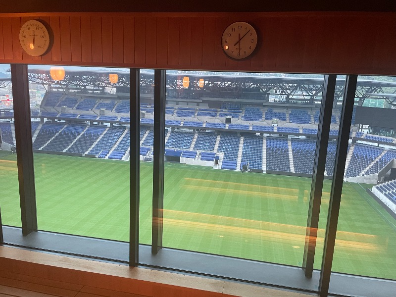 あおあおとした芝生が朝日に照らされてさらにキレイ。ととのいスペースからもこの景色が見えたら最高なんだけど。来年J1にあがったらますます人増えちゃうかな。おっと、まだそれは言わないでおこう。