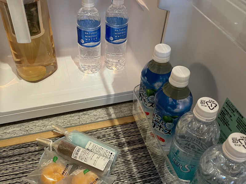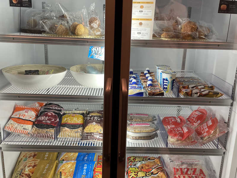 空港が近いからか、結構外国人の利用も多いみたい。送迎もしてくれるみたいだし便利。宿泊者はラウンジ?からお菓子や軽食、飲み物を自由に部屋に持って行けるのもすごいよね。レンチンのピザやチャーハンみたいな冷食もある。サウナ後は、大好きなブルボンのチーズおかきで塩分チャージ。こうしてサウナの夜は更けていく。