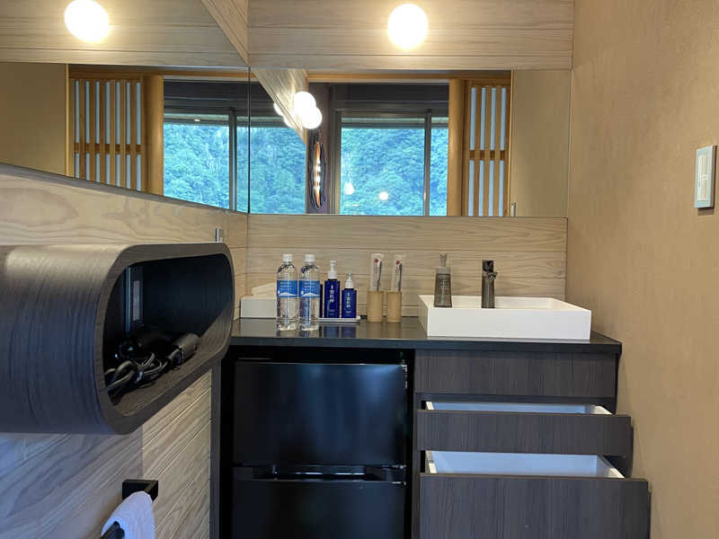 まずはアロマオイル「滸」で3セット。ちょい甘のさわやかな香り。12分でしっかり滝汗、宿のバズり目的だけのサウナじゃない本気のヤツ。水風呂ももしかして地下水なのかな?ってくらい柔らかで入りやすい。クールダウンした後はベランダのリクライニングチェアでまったり。響渓谷の景色を眺めながら、きっちりととのい。夕方、夜、朝のトータル9セット。朝にはもう一つのアロマオイル「雫」でハーブ系の香りですっきり寝起きのととのい。セミや秋の虫の声を聴きつつ、夜は月と星、朝は登ってくる朝日を見上げながら、おんせん県おおいたって言うけど温泉以外もクオリティ高くない?ぶっとび。