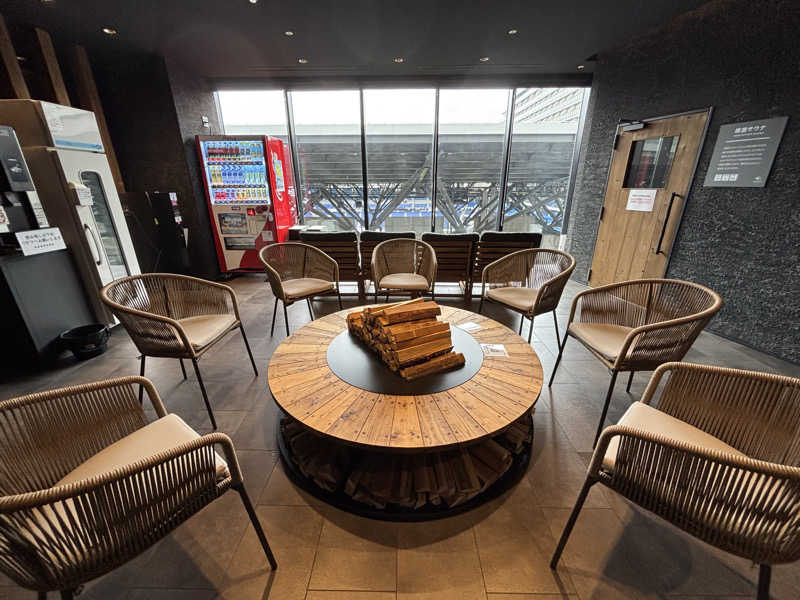 部屋にタオルセットと手提げカゴが用意されてるので安心。ワクワクしながら潜入。さぞ人が多いかと思ってたのに…え?お風呂2人くらいしかいない…。これは嬉しい誤算。ひろーい大浴場、洗い場もかなり贅沢なスペース。ゆったりお清めと下茹で。お風呂も3種類あるから飽きない。しっかり温まったところでサ室へIN。大浴場に負けないくらいひろーいサ室❗️これ40人くらい入れるんじゃ?左右に2段ずつ、奥行き5〜6メートルくらいあるのでは。タオルは敷かずビート板のスタイル。1番奥にはオリンピアの巨大なガスストーブが鎮座してる。温度は72℃くらいで物足りなさもあるかもだけど、下茹でと組み合わせればものの2〜3分で滝汗。湿度もちゃんとあるし、長尾湯と同じで息苦しさも感じない。大きな窓が2つもあって、お風呂や外の空をを見渡しながら蒸し蒸し。BGMにジャズが流れてて、こんな広いサ室を独り占めなんて、もしかして明日死ぬ?ってくらい大満足。