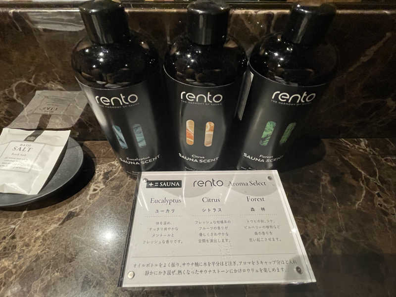 1セット目からかつてない蒸し上がりで、サ室出たら目の前が水風呂という神動線。肉まんみたいにホッカホカになった体を一気に冷やしていく。あーこれですよ、サウナの醍醐味。ととのいスペースで一息ついたら、ルーティーン突入。4セット目にはアウフグースタイムに。ここの熱波は初体験だけど、お姉さん爆風すぎて耐えきれずOUT。あまみが皮膚に灼けつくぞってくらいの団扇さばきだったよ。アロマ水はマスカットの香りで癒されたから、5セット目は残り香を嗜みながら2回目のオートロウリュ。
